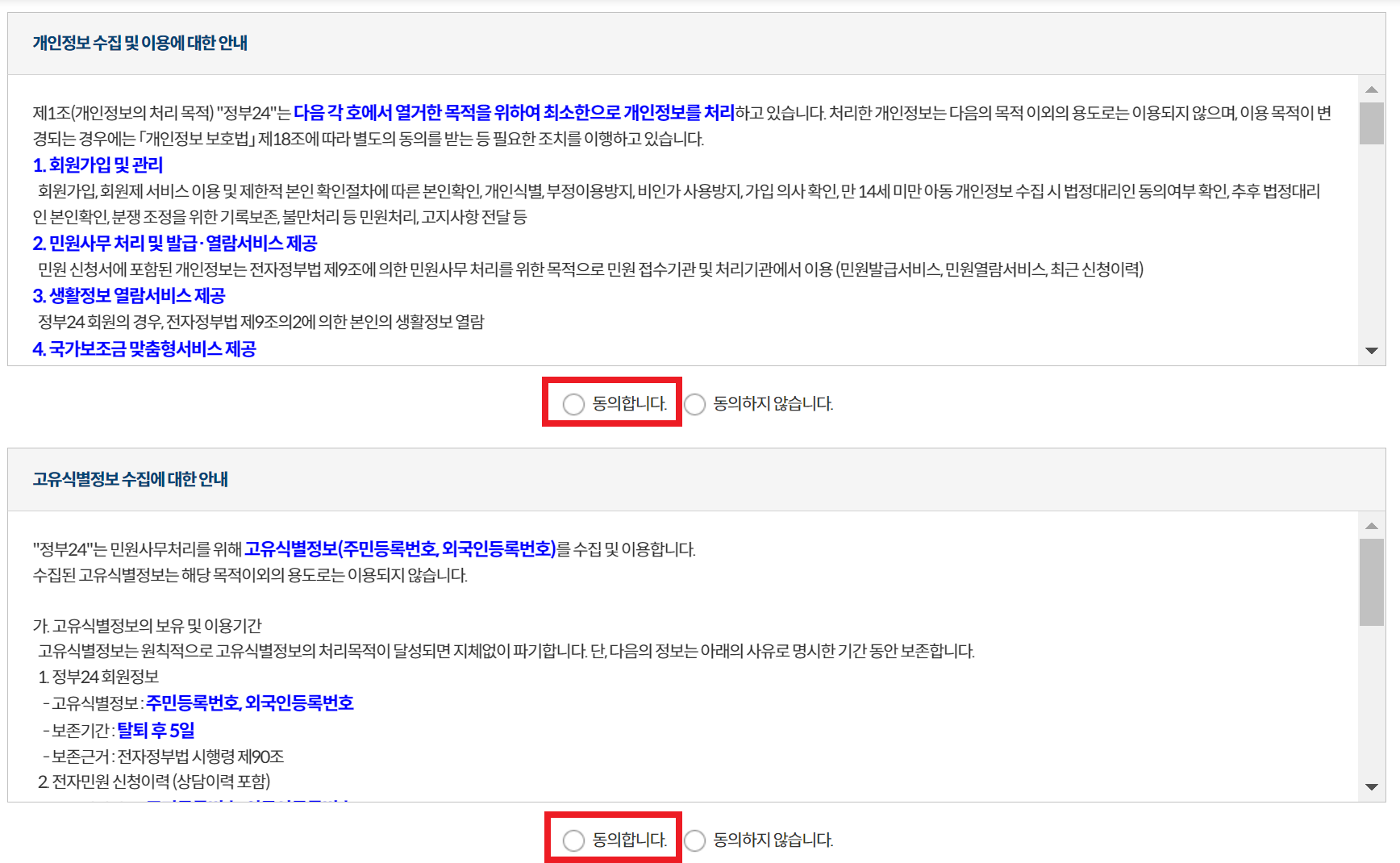 회원가입을 하지 않으신 분들은 [비회원 신청하기]를 누른 후 아래사진처럼 정보제공 및 이용에 대해 동의하시고 비회원 신청 정보를 입력하고 [확인] 버튼을 클릭해서 다음단계로 진행하시면 됩니다.