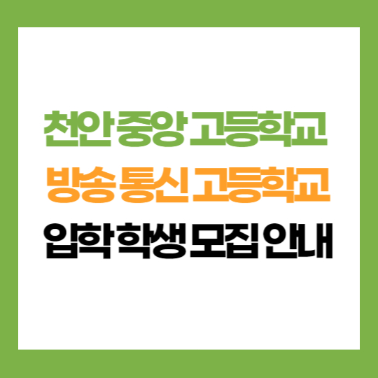 천안 중앙 고등학교 부설 방송 통신 고등학교에 입학하기 위해 필요한 특별한 자격과 시험은 없으며 누구나 지원할 수 있습니다. 단, 면접은 실시 한다는 점을 참고하시면 좋을 것 같습니다. (지원자가 많을 경우 연장자 순으로 모집)